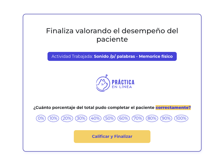 Aplica recursos interactivos en vivo para fortalecer la participación, mantener la motivación y potenciar los resultados terapéuticos de tus pacientes en PEL.