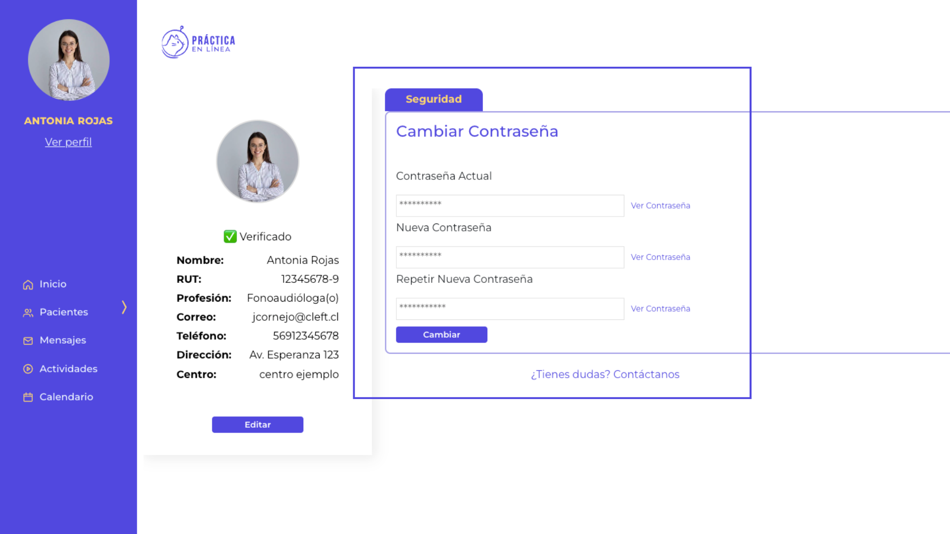 Recuerda mantenerla segura y no compartirla con terceros para proteger tus datos y los de tus pacientes.