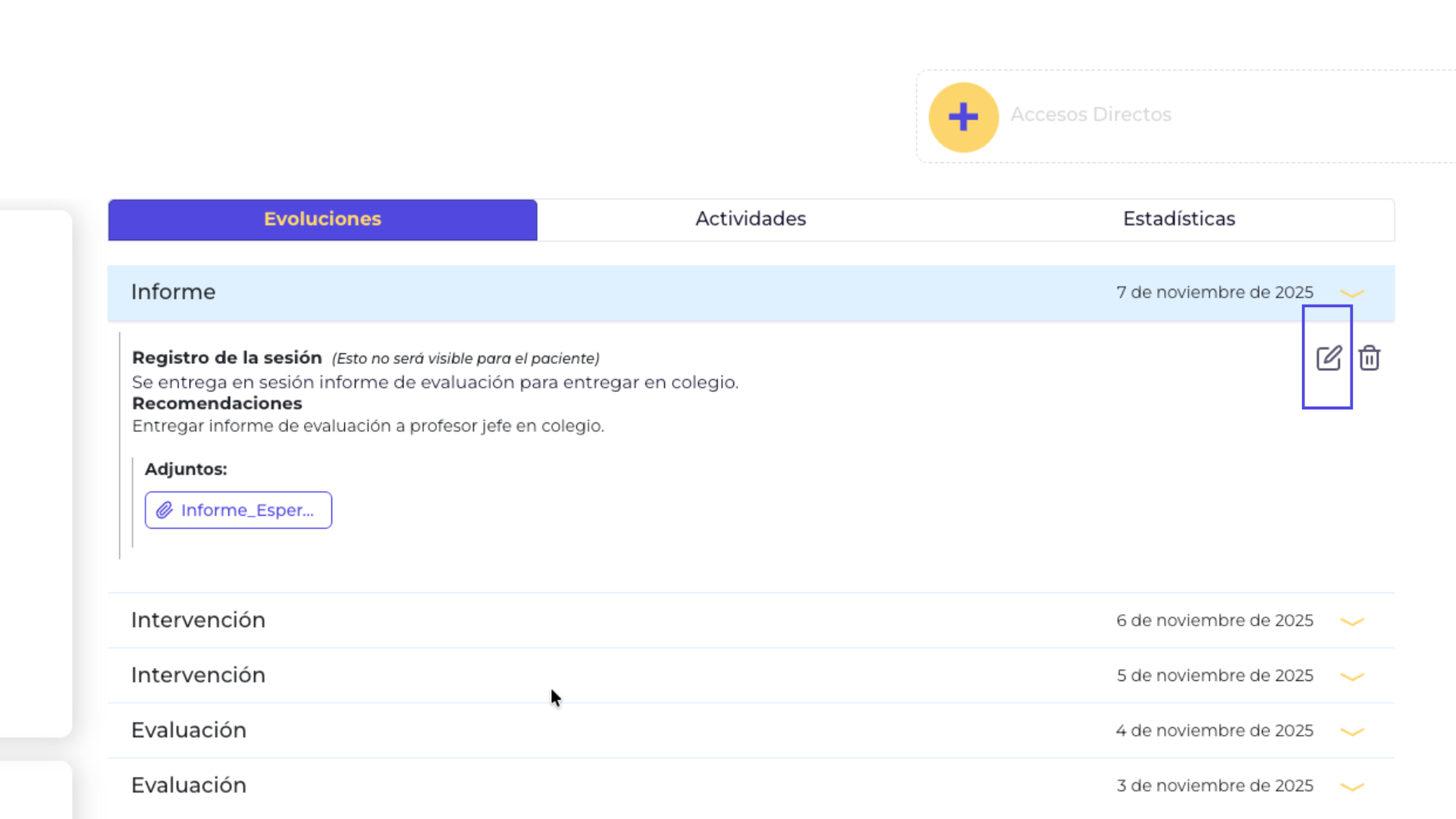 Esto te permite mantener la información clínica siempre actualizada y corregir datos si es necesario.