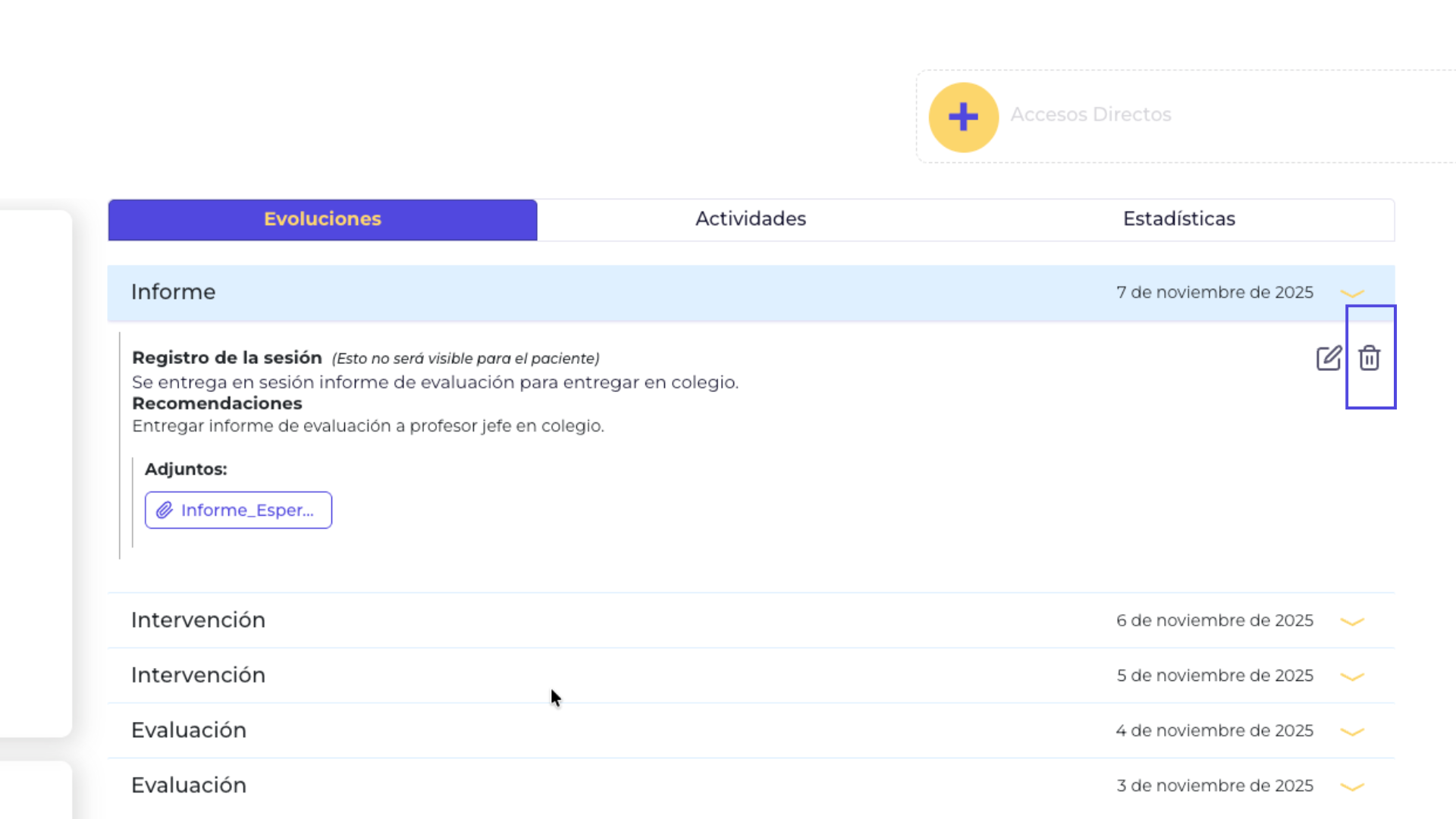 💡 Nota: Los cambios que realices en las recomendaciones o adjuntos se actualizarán de inmediato en la aplicación del paciente.